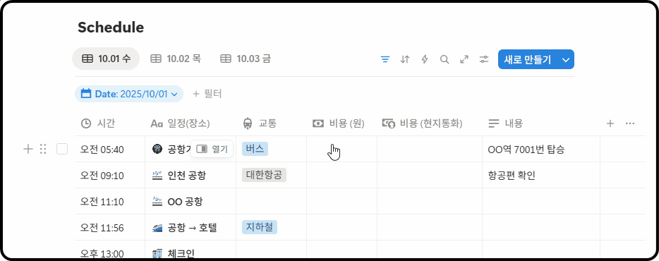 ✈️ 3. 일정표, 경비표, 체크리스트… 모든 페이지가 자동으로 연결되도록