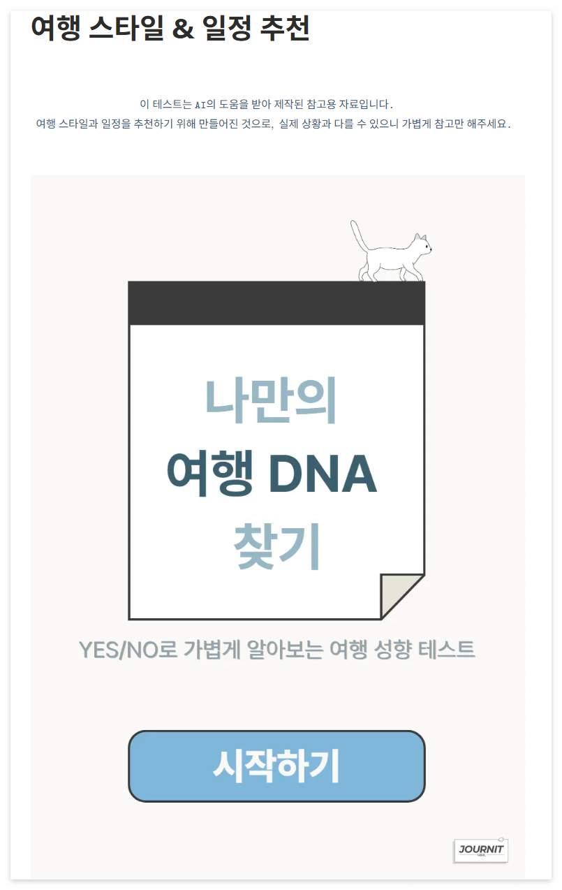 ✨ 2. 그중에서도 가장 큰 변화는 ‘여행 성향 테스트’ 기능