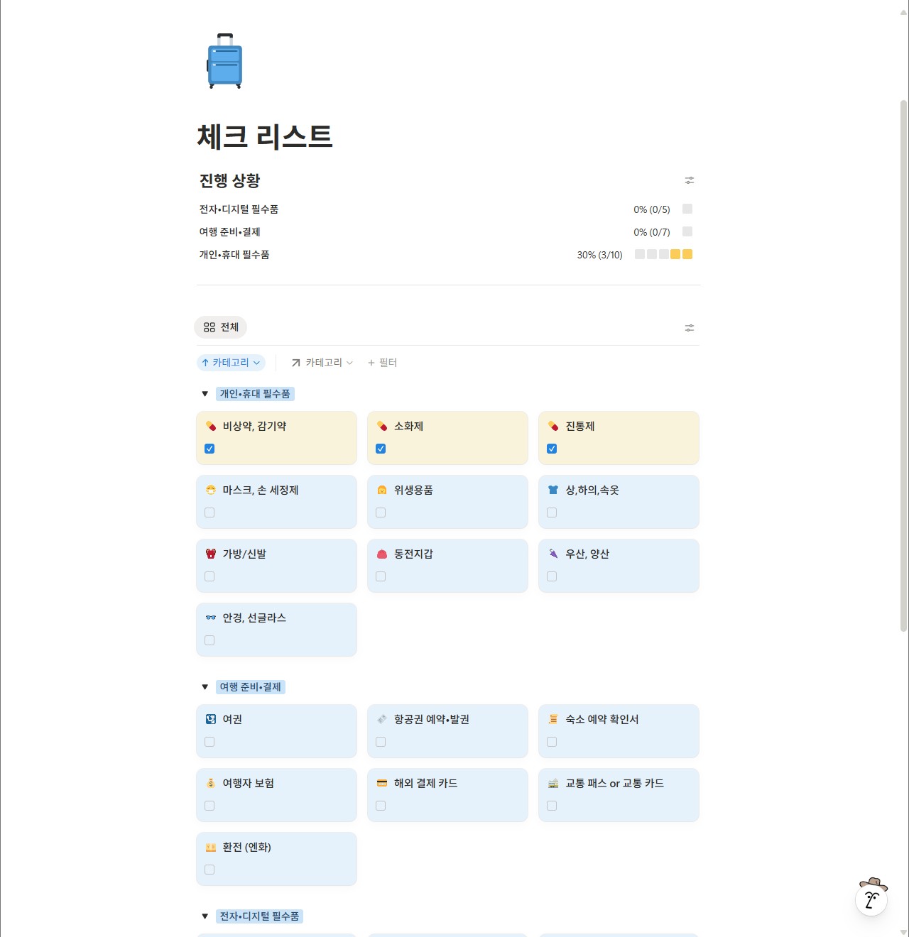 저는 이걸 깨닫고 나서 체크리스트를 아예 ‘카테고리 시스템’으로 고정해 두기 시작했습니다.
