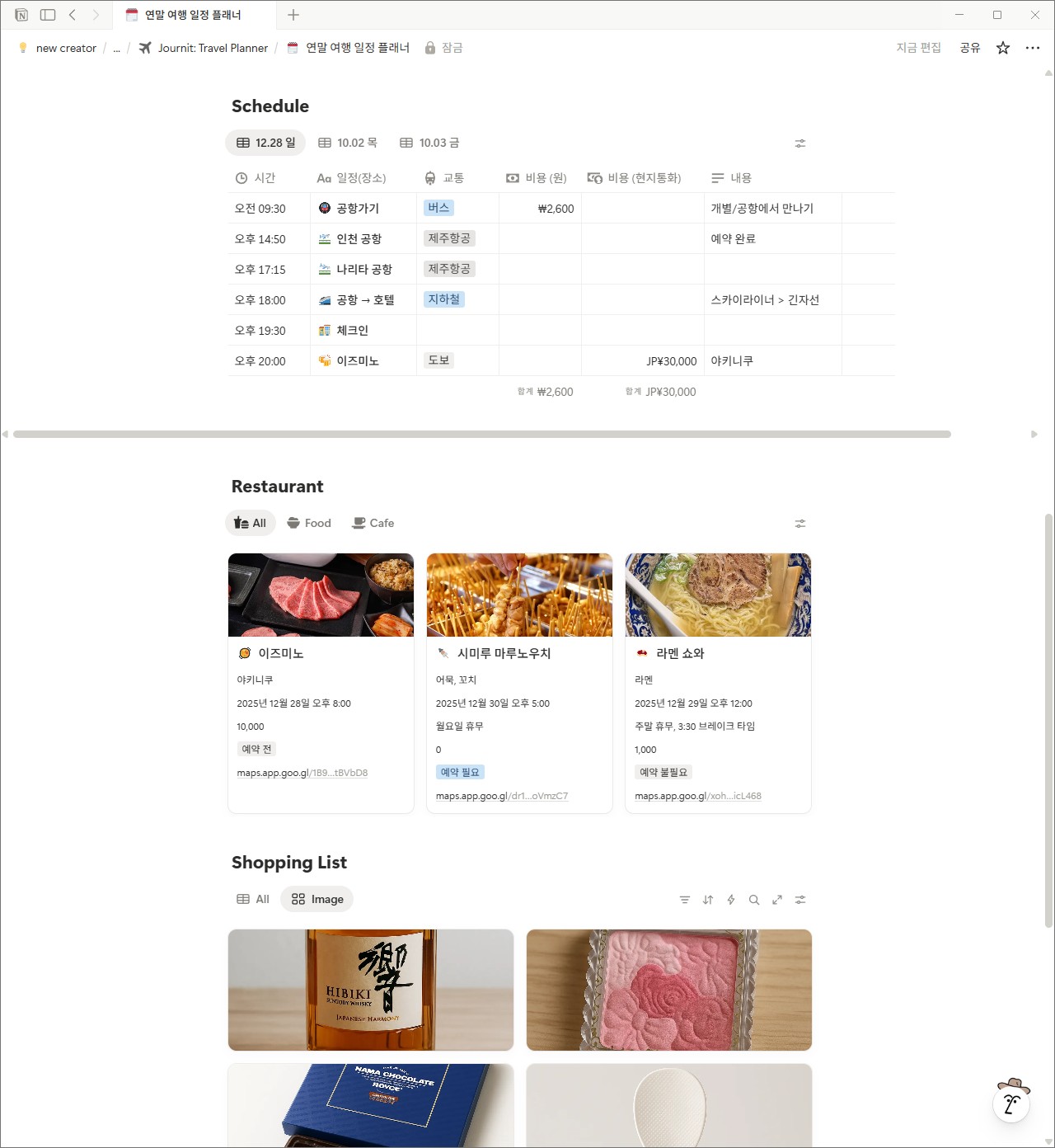 저도 여행 준비할 때마다 일정표는 따로 만들고, 예산 계산은 엑셀 열고, 캡처해둔 맛집은 폴더에 흩어지고…